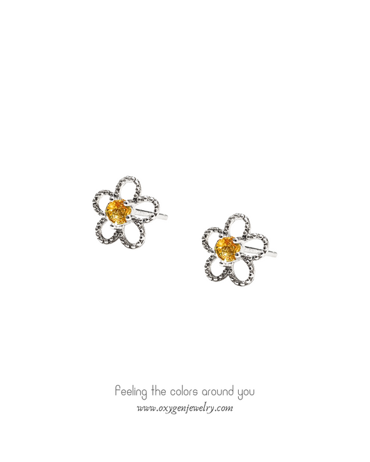 Citrine button edge stud earrings