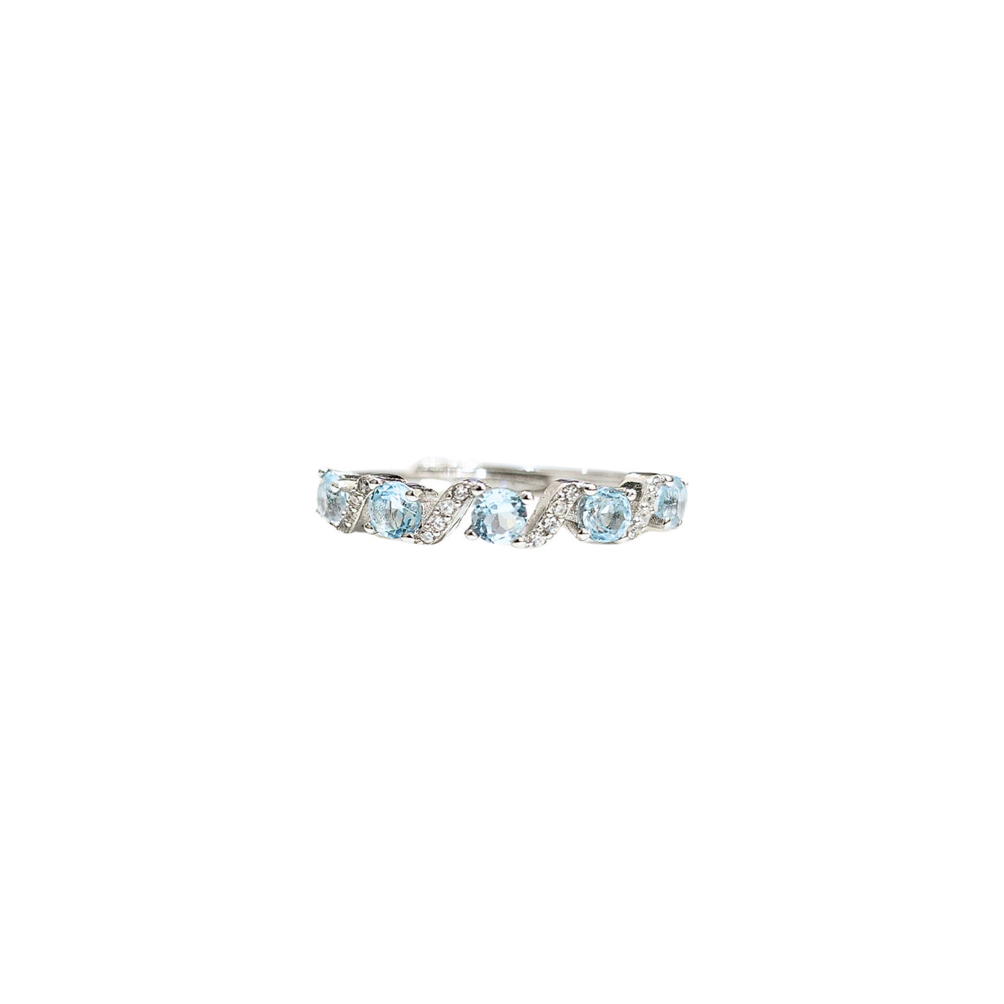 Oval Sky Blue Topaz Ring with Round Zirconia