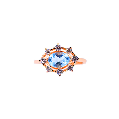 Oval Sky Blue Topaz Ring with Round Zirconia