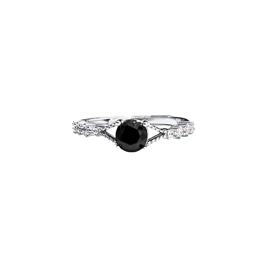 Oval black spinel and round zirconia ring