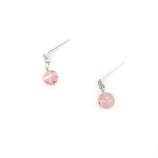 Irregular Strawberry Quartz Sterling Silver Earrings