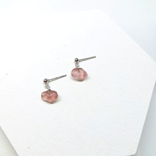 Irregular Strawberry Quartz Sterling Silver Stud Earrings