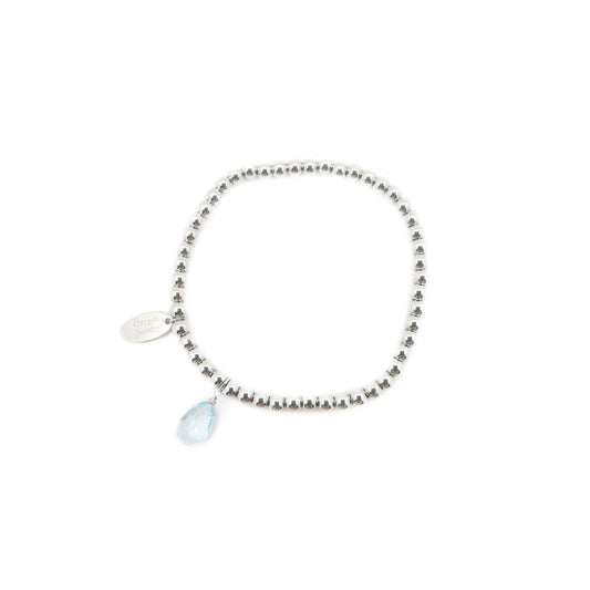 Aquamarine Chalcedony Pear Faceted Metal Bead Stretch Bracelet