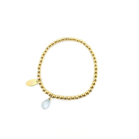 Sky Blue Topaz Pear Shape Metal Bead Stretch Bracelet