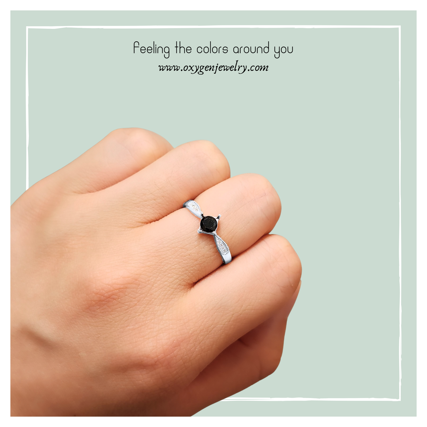 黑尖晶方爪鋯石戒指
