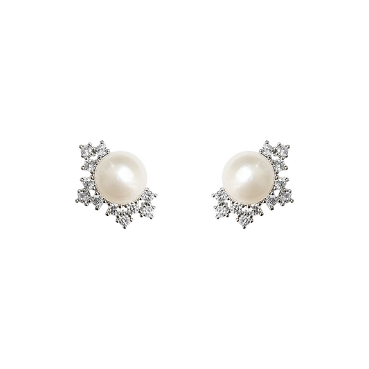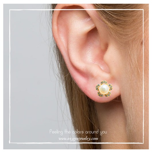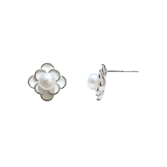 淡水珍珠六瓣花雙色琺瑯款耳釘